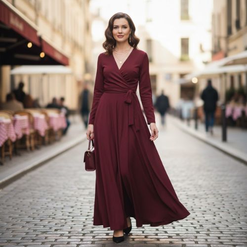 Wrap dresses almost har body type par flattering lagti hain. Ye waist ko highlight karti hain aur natural feminine silhouette create karti hain. Rose, burgundy ya soft pink shades wrap dress ko aur zyada romantic bana dete hain, jo Valentine’s Day ke liye ideal hai.