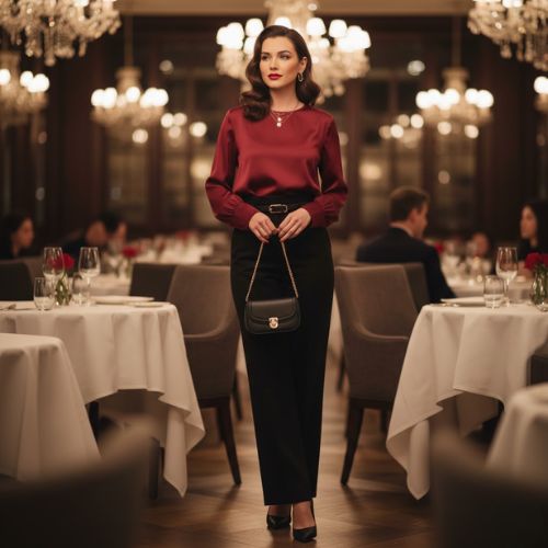 Agar aap dinner date ya work-to-date outfit chahti hain, toh satin blouse aur tailored pants ka combo ideal hai. Satin fabric romantic feel deta hai, jabki tailored pants look ko structured aur elegant banati hain. Ye outfit classy, mature aur stylish lagta hai.