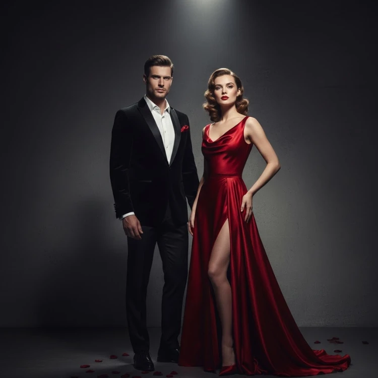 Red is the ultimate Valentine color and always photographs beautifully. Choose a fitted dress, satin slip, or coordinated red outfits for couples. Keep the background minimal so the color stands out. This look works perfectly for indoor studio shoots or clean white walls. Add soft lighting to enhance skin tones. It feels bold, confident, and timeless, making it perfect for Pinterest saves.