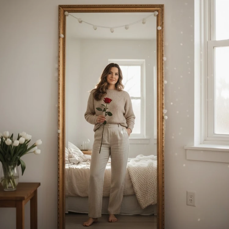 This shoot is perfect for solo creators. Use a full-length mirror, natural light, and minimal styling. It celebrates confidence and self-love, which is a growing Valentine trend in the USA. Simple poses feel more powerful than forced ones. Neutral outfits work best here.
