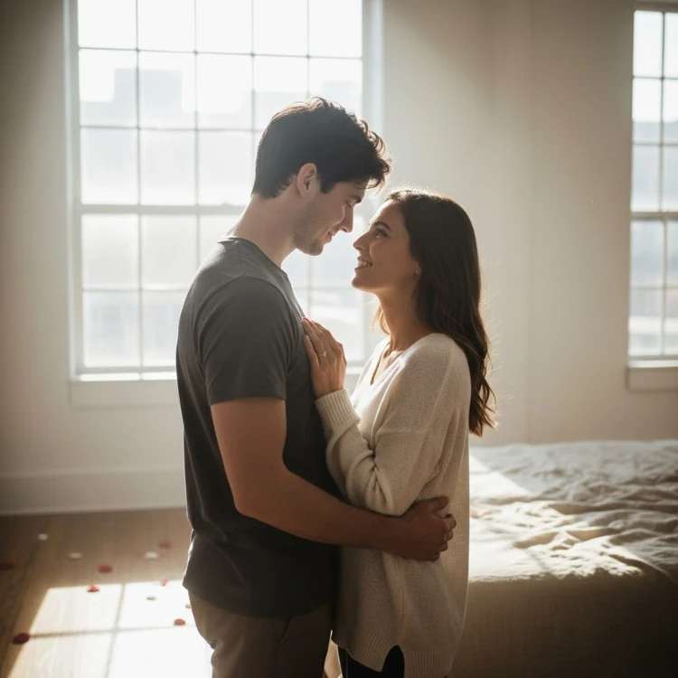 Shoot near large windows using natural light. This creates soft shadows and natural skin tones. Perfect for intimate and emotional moments. Simple poses work best here.